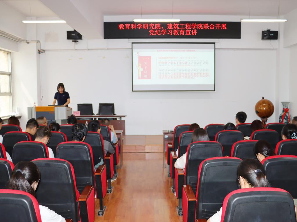 纪检监察组副处长李晓源深入解读《中国共产党纪律处分条例》。教育科学研究院、建筑工程学院师生党员参加宣讲学习。宣讲会由教育科学研究院党总支书记綦明霞主持。