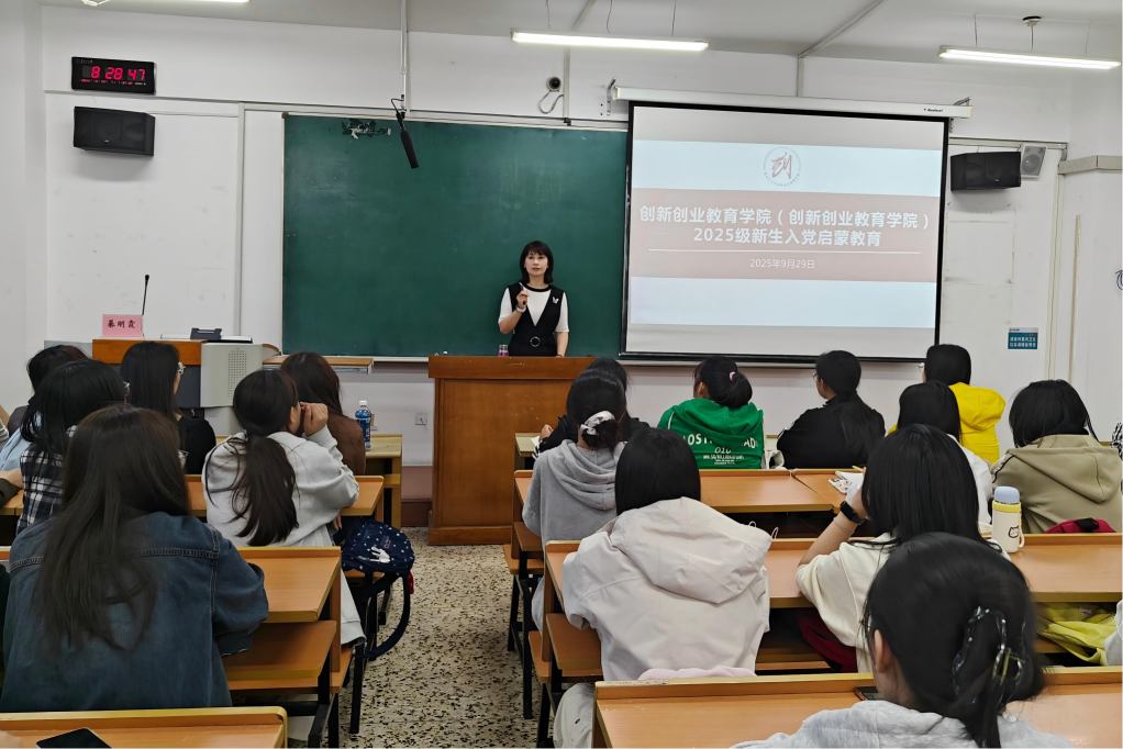 (创新创业教育中心)在汇文楼441开展2025级新生入党启蒙教育。会议由学院组织员刘锐主持,学院党委书记綦明霞、全体2025级学生参加。
