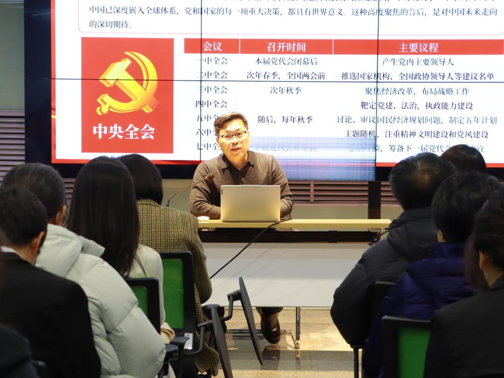 在汇文楼创客空间开展党的二十届四中全会精神宣讲活动。学院邀请马克思主义学院教授侯宪利进行专题宣讲,学院全体教师、学生党员代表参加学习,宣讲会由学院党委书记綦明霞主持。