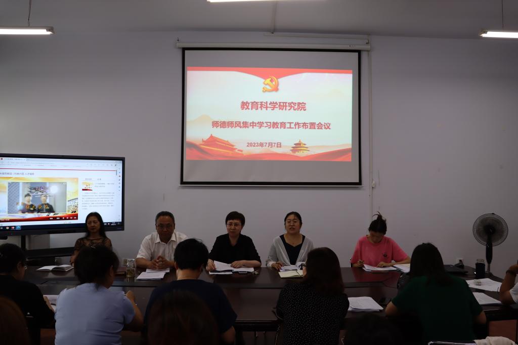 开展师德集中学习教育工作方案》工作要求,教育科学研究院结合工作实际,第一时间组织落实,于2023年7月7日下午汇文楼952会议室,召开教育科学研究院师德集中学习教育工作布置会,学院全体教职工参加会议,党总支书记金鹏主持会议。