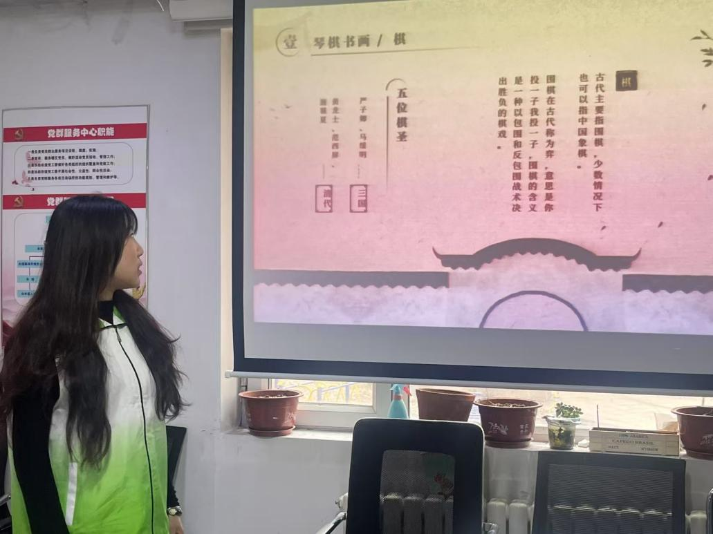 青年志愿者协会于3月12日组织志愿者前往黑大社区开展文化传承宣讲活动。志愿者孙佳琪与邓洺薪围绕“琴棋书画”“传统文学”“传统节日”“中国戏剧”四方面,通过生动的讲解与互动,为居民展示中华文化的魅力,激励大家在日常生活中践行传统文化,做中华文明的守护者与传播者。