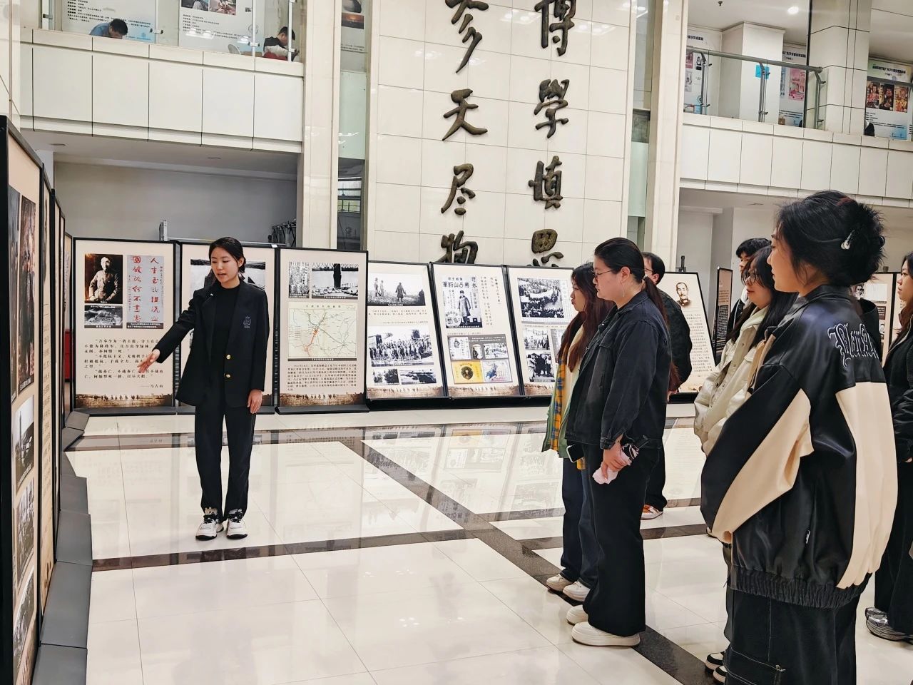 “走出黑河,英勇抗战——抗日民族英雄马占山”历史陈列展分为镇守黑河整饬边务助经济、黑河出发打响抗战第一枪、二次抗战誓师黑河再出发和坚守抗战爱国之心终不移四个部分,较为完整地展现了马占山将军以家国大义为根本,两次从黑河出发,始终坚持武装抗日,誓死效国、戎马一生的爱国精神。展览共计39块图文展板。参观中,同学们被马占山将军在民族危亡之际挺身而出、用血肉之躯捍卫国土的英雄事迹所震撼,深刻感受抗日先烈舍生忘死、保家卫国的赤诚情怀。