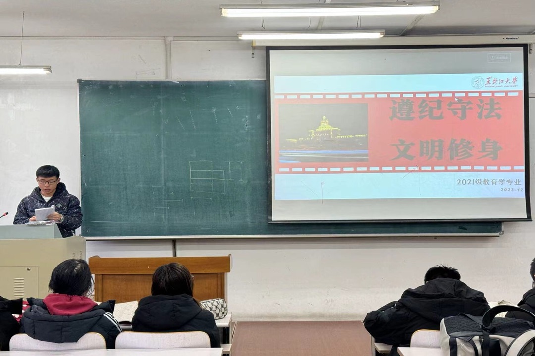 以道德浸润心灵,以纪律规范行为。为进一步加强遵纪守法宣传教育,帮助我院学生熟悉掌握校规校纪,自觉规范在校行为,强化遵纪守法意识,营造良好班级氛围,教育科学研究院各年级于12月中旬分别开展以“遵纪守法 文明修身”为主题的班会。
