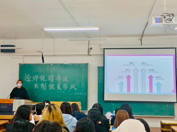 班会上,各班班长向同学们讲解审核评估对学校、师生的重要意义。接着,各班从综合素质评价学分修读、学生管理规定、个人发展与能力提升几方面进行介绍。与同学们一同分析了当前社会形势,并呼吁同学们结合自身实际情况确立未来规划。同时结合《av漫画