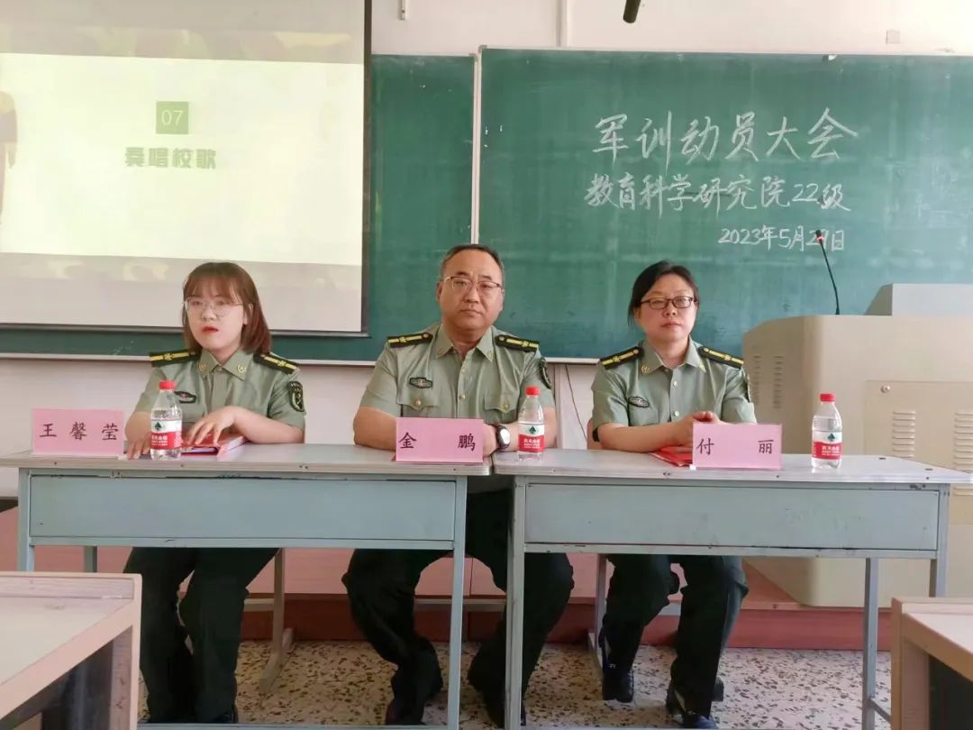 军训是大学生的必修课,是学校实施素质教育的重要途径,是深入开展学校国防教育的主要内容。为保证2022级学生军事训练课教学任务的圆满完成,教育科学研究院于2023年5月29日上午9时在汇文楼366教室举行了2022级军训动员大会,教育科学研究院党总支书记金鹏,党总支副书记付丽,院团委副书记、2021级、2022级辅导员王馨莹,以及教官周旭、李爽和2022级全体同学参加了本次大会。