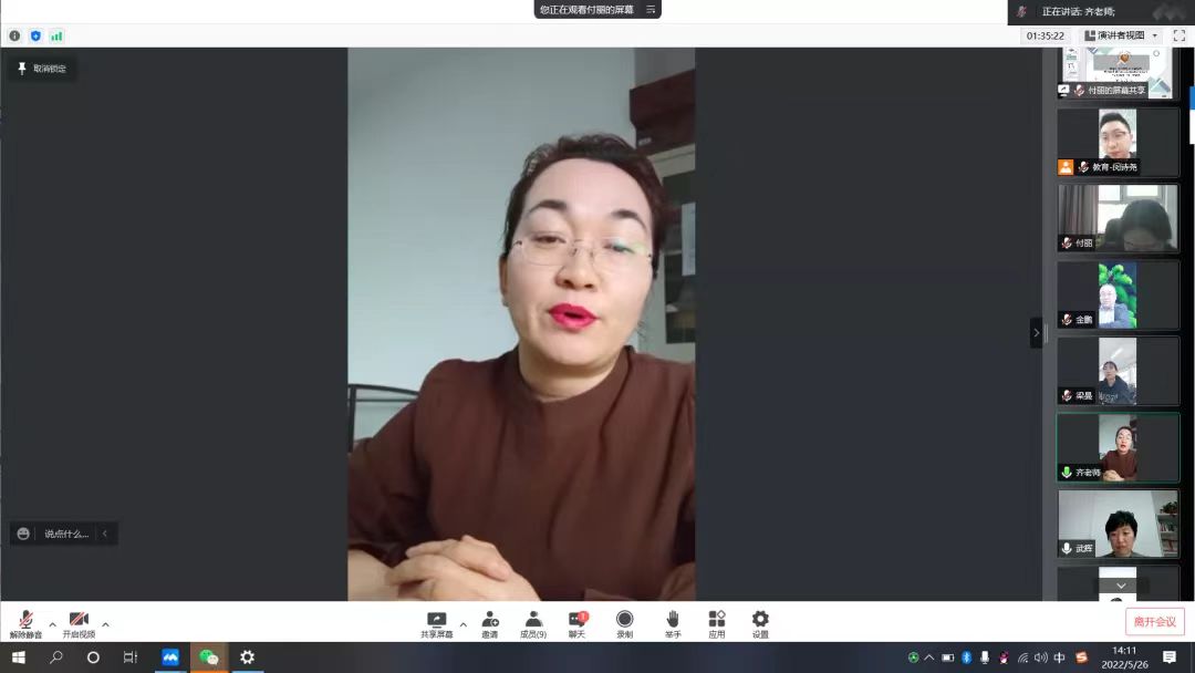 教育科学研究院同哈尔滨李洪东心理咨询有限公司于2022年5月26日14时通过腾讯会议开展“访企拓岗”线上交流会。本次会议由院党总支副书记付丽主持,院党总支书记金鹏,院长王世红,副院长佟玉英,2018级、2020级辅导员梁曼,2019级辅导员闵诗尧,以及代表哈尔滨李洪东心理咨询有限公司的齐总监和武经理出席参加。