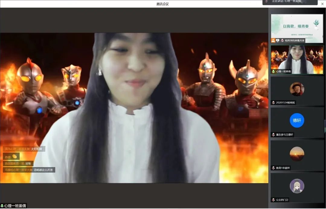 时光静寂流逝,永不复返,但这阻挡不了我们在热爱的日子里闪闪发光。以我心中的歌,唱我的青春!至此,教育科学研究院“以我歌,唱青春”线上歌唱比赛在师生们的赞美与不舍中落下帷幕。师生们纷纷表示,期待学院下一场精彩活动的到来!(教育科学研究院供稿)