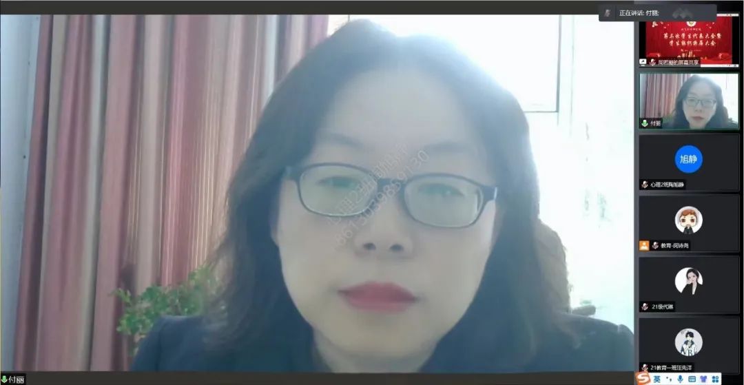 出席本次大会的领导及老师有:教育科学研究院党总支副书记付丽,院团委书记、2019级辅导员闵诗尧,院团委副书记、2018级、2020级辅导员梁曼,2021级辅导员王馨莹,教育科学研究院第十八届学生会、第四届青年志愿者协会全体成员,各年级学生代表,共计69名同学参加本次会议。