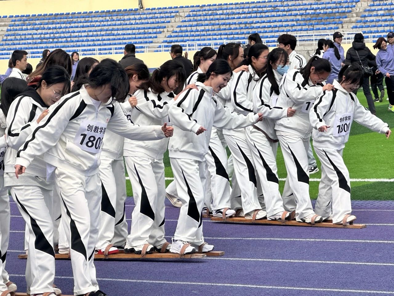 跳远凌空、铅球破风,力量在空中刻下拼搏弧线;单杠咬牙引体、垫上仰卧起坐,汗水浸透衣衫,却浇不灭超越自我的倔强。五人板鞋竞速,步伐同频踏出“教育节奏”;八字跳大绳,跃动的身影串起欢声笑语;脚尖轻点彩毽,传统玩法踢出新意。胜负之外,默契与笑容才是赛场的终极答案。三尺讲台外,老师们化身运动健将,接力赛中稳中求胜,师生同台竞技,拉近心与心的距离。