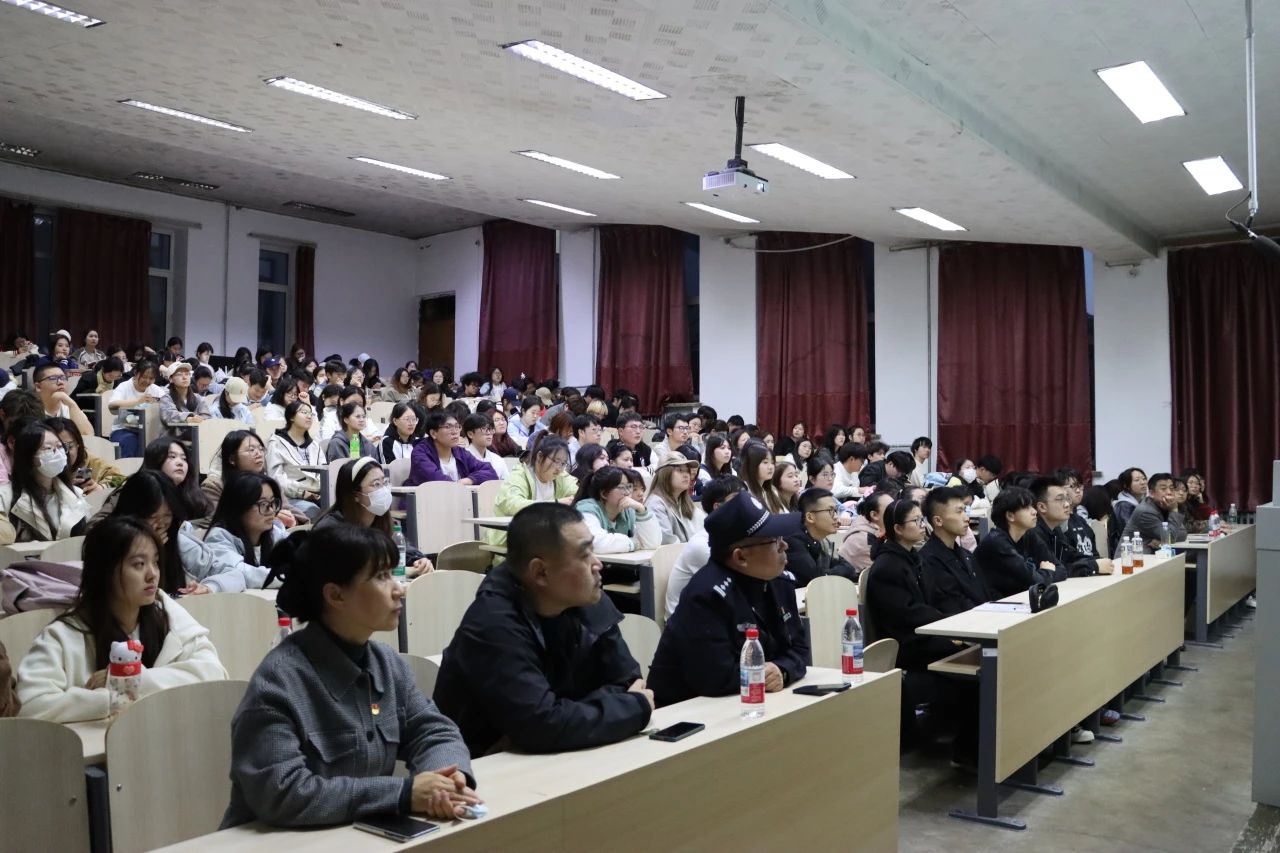 于4月18日在二号楼召开国家安全知识讲座。本次讲座特邀哈尔滨铁路公安局哈尔滨公安处哈尔滨南站派出所教官云飞解读国家安全知识,学院2023级和2024级全体学生参与学习,讲座由学院党委副书记屈广宁主持。