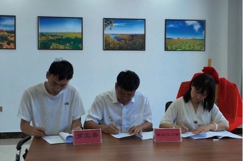 党委书记綦明霞与萝北县委副书记任佳伟共同签署了《共建社会实践基地合作协议》。