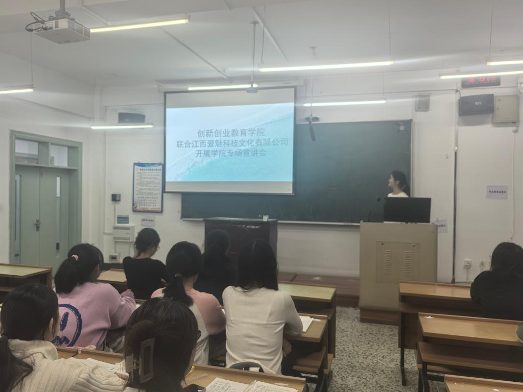 于4 月 4 日在三号楼举办江西爱魅科技文化有限公司专场宣讲会,部分2025 届毕业生积极参与。