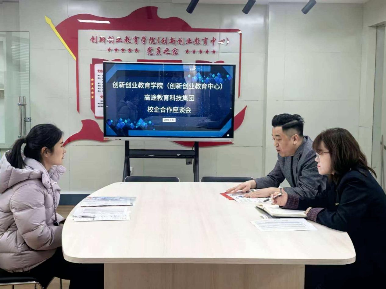 于3月13日与高途教育科技集团开展校企合作座谈会,学院党委副书记屈广宁,2025届毕业生辅导员王馨莹与高途教育科技集团相关负责人参会。